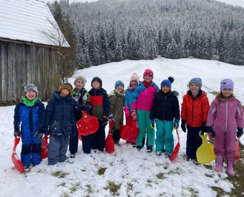 Am 13. Dezember nutzten die 1. und 2. Klasse den ersten Schnee und verlagerten den Turnunterricht ins Freie. Die Kinder hatten dabei sichtlich Spaß.