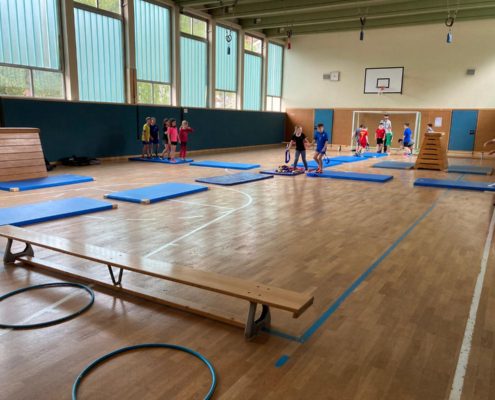 Die 1. und 2. Klasse ist in der glücklichen Lage, dieses und nächstes Schuljahr am Programm "Bewegte Klasse" von der Gesundheitsvorsorge "Tut gut!" teilzunehmen. Durch verschiedenste Bewegungsangebote sollen die Kinder zu mehr Spaß und Freude an der Bewegung motiviert werden.
