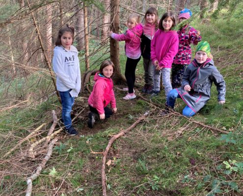 Die 1. Klasse der Volksschule St. Aegyd erkundete mit Herrn Hannes Schweiger den Wald, um dessen Vielfalt besser kennenzulernen.