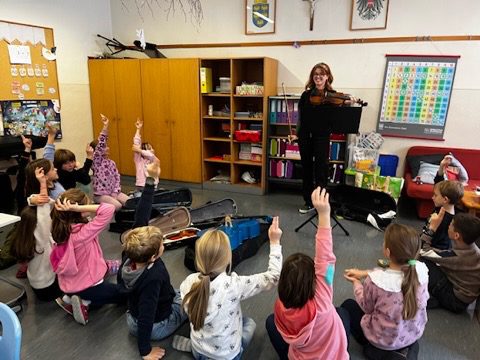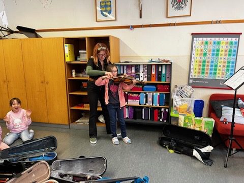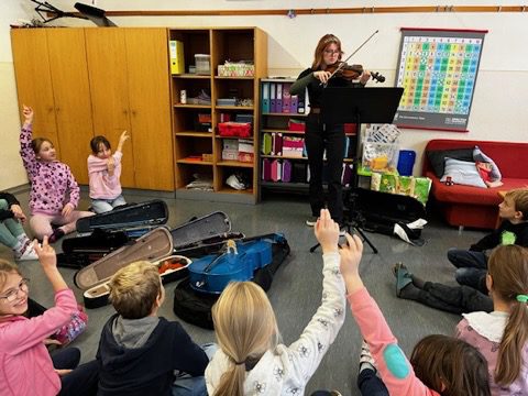 Am 28.11. durfte die dritte Klasse mit einer Violinistin näheres zur Geige erfahren. Die einzelnen Teile der Geige wurden besprochen, es gab ein kleines Konzert, unterschiedliche interessante Mitbringsel zum Ansehen oder Ausprobieren. Schlussendlich konnten die Kinder auch selbst versuchen zu musizieren.