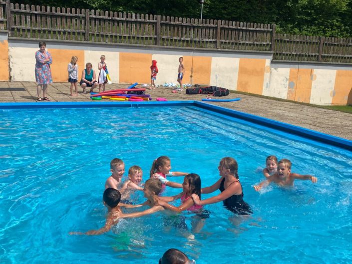 Bei sommerlichem Wetter konnten sich die Kinder im Wasser austoben, schwimmen, rutschen, springen und gemeinsam spielen. Auch das Eis ließen sich alle schmecken Die Kinder genossen die Abkühlung und die gemeinsame Zeit im Freien.